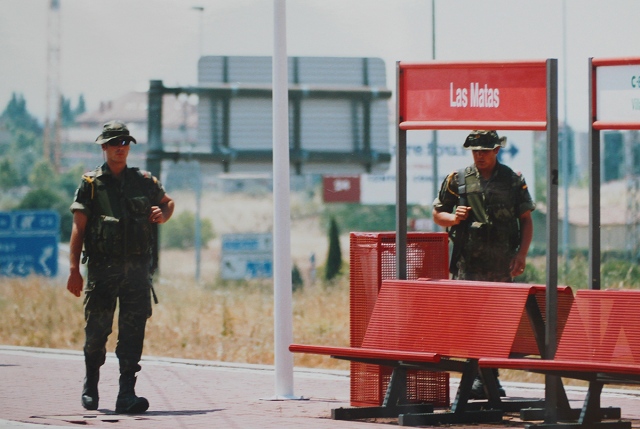 El Ejército participa con las Fuerzas de Seguridad del Estado en el reconocimiento pormenorizado, «kilómetro a kilómetro», de la vía del AVE Madrid-Sevilla y en la vigilancia de otras líneas que el ministro del Interior, Ángel Acebes, ha calificado como «sensibles»: el AVE a Lleida y líneas férreas alternativas para viajar a Sevilla. En el reconocimiento y vigilancia de las vías participarán militares, agentes de las Fuerzas de Seguridad y vigilantes de Renfe. Asimismo, se emplearán 45 helicópteros, todas las unidades caninas, todoterrenos y todoterrenos blindados del Ejército, vagonetas y trenes exploradores de Renfe.