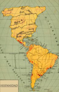 En la conmemoración de este año 2025 cabe reconocer que vivimos pésimos tiempos para la Hispanidad y para lo que ella representa en la historia de la Cultura y de la Civilización universales. Los valores que informaban esta ingente y descomunal labor están hoy en almoneda no ya en América incluso paradójicamente en la propia España. Gran parte de nuestra clase dirigente por complicidad, cobardía o ignorancia adopta los valores y mañas del enemigo. Pero no es tanto de extrañar cuando la corrupción reina allí y aquí. Y la primera corrupción es la del Entendimiento. Parece claro que ni la Corona, su titular carece de entidad, ni la Iglesia, cuya máxima jerarquía actual no esconde declararse en el bando opuesto, por citar dos otrora importantes instituciones tradicionales, va a apoyar de verdad el fomento y reorganización de la Hispanidad.