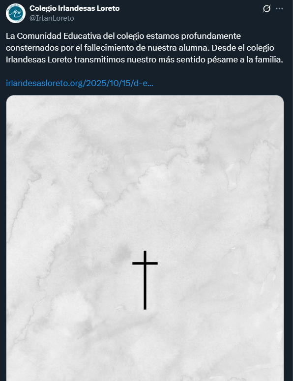 El comunicado del colegio Irlandesas Loreto de Sevilla, publicado el 15 de octubre de 2025 en su cuenta de X, es un ejercicio de evasión que indigna más por lo que oculta que por lo que dice. Con una imagen minimalista de una cruz sobre un fondo gris y un texto que lamenta el “fallecimiento” de una alumna, el centro educativo pretende cerrar una herida que aún sangra, ignorando la verdad que emerge entre líneas: esta niña de 14 años se quitó la vida tras sufrir un acoso escolar devastador, un hecho que la familia había denunciado sin que el colegio tomara medidas efectivas. Este silencio institucional no solo minimiza la tragedia, sino que apunta a una negligencia que pudo haber sido evitada. La comunidad educativa y la sociedad merecen respuestas, no oraciones.