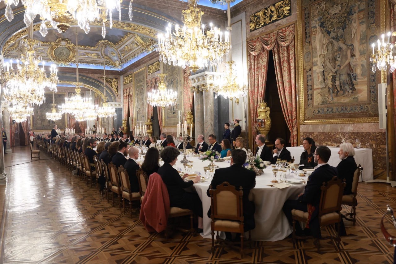 Se mantiene la violación constitucional con el tema fundamental de los Presupuestos, pero a todo esto Su Majestad entretiene su ocio mientras disfruta de su feliz reinado ofreciendo un banquete al presidente de Alemania, que ignoro cómo se llama, y señora. Inmisericorde con sus invitados don Felipe les endiñó un filantrópico sermón estupefaciente de los suyos congratulándose de los hermosos ideales europeos que sirven tanto su desquiciado reino anfitrión como a la degradada Alemania invitada.