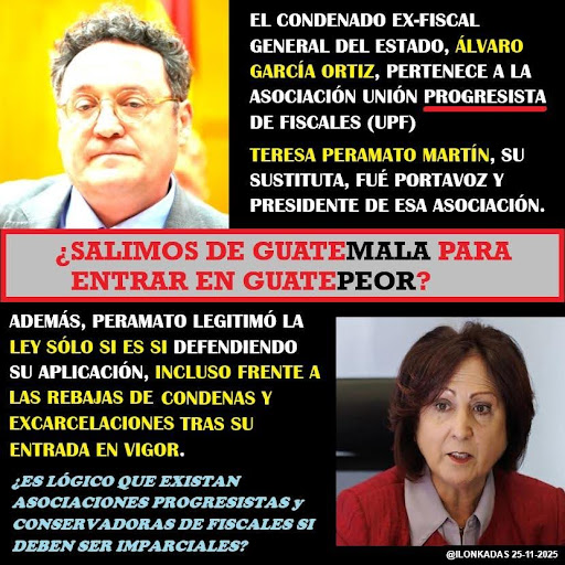 El 25-11 el Consejo de Ministros eligió a Teresa Peramato como nueva fiscal general y al día siguiente el Consejo General del Poder Judicial avaló su nombramiento porque “¿La fiscalía general del Estado de quién depende…?”.