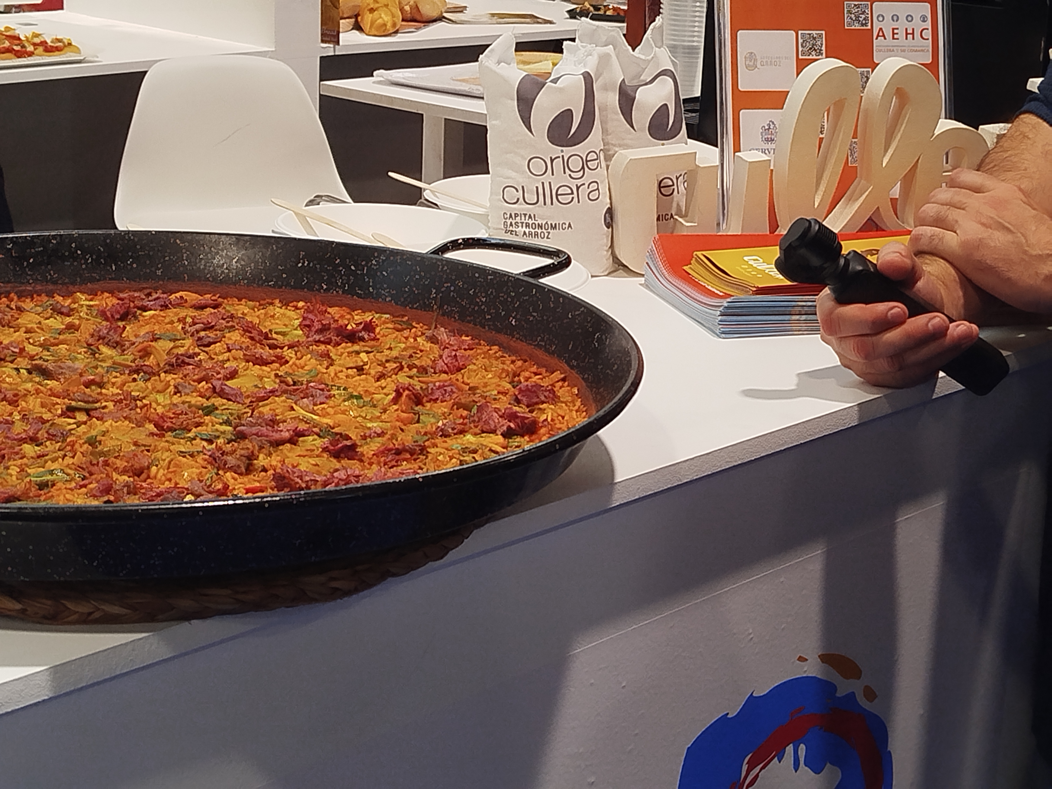 Una paella fue entrevistada en directo en el apogeo de la feria.