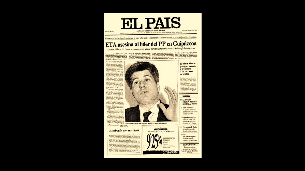 Sí. Hablando de «Memoria histórica» cabe recordar que tal día como hoy, el 23 de enero de 1995, festividad de San Ildefonso, cuando almorzaba en un restaurante donostiarra con María San Gil fue vilmente asesinado Gregorio Ordóñez por la banda nacionalista vasca asesina ETA, cuyo representante político es uno de los socios que sostienen al actual gobierno de Su Majestad que actúa al margen del parlamento, sin presupuestos, mediante decretos.