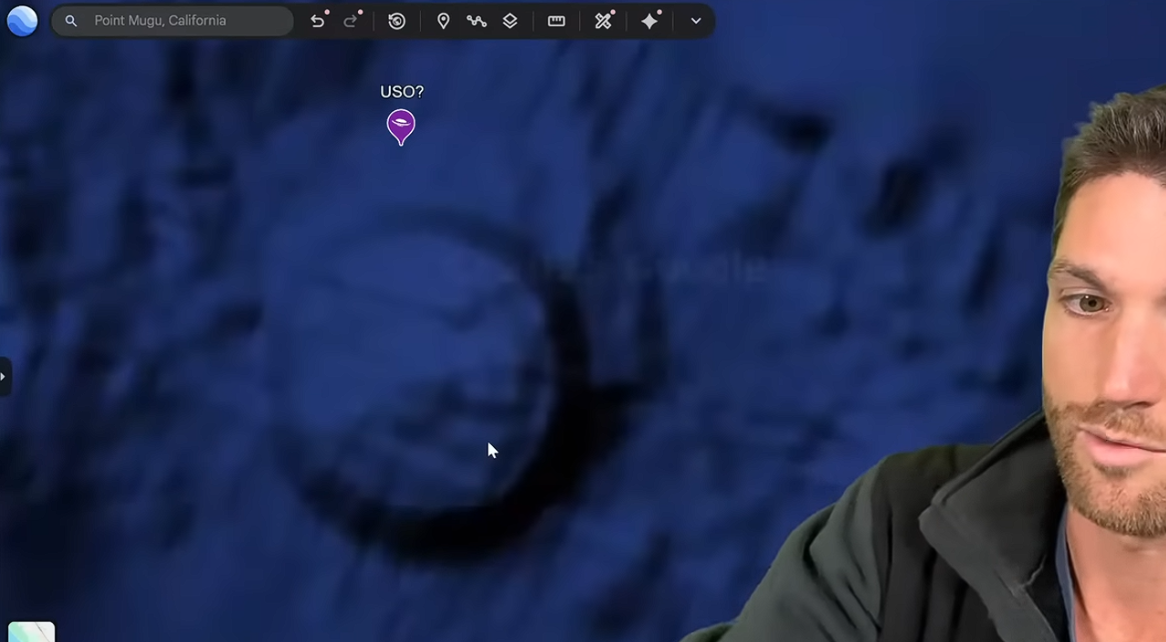 Uno de los puntos más controvertidos es una estructura frente a la costa de Malibú, California. Burns muestra imágenes antiguas de Google Earth donde se ve una formación con pilares y una cima plana, que algunos especulan podría ser una base submarina o incluso un sitio alienígena. Sin embargo, en la versión actual de Google Earth, este área aparece borrosa intencionalmente, lo que genera sospechas de ocultamiento. Burns, con experiencia en la industria sísmica marina, nota que la zona está bien mapeada debido a investigaciones de instituciones como el Scripps Institute of Oceanography, pero cse pregunta por qué se ha censurado específicamente esta formación.