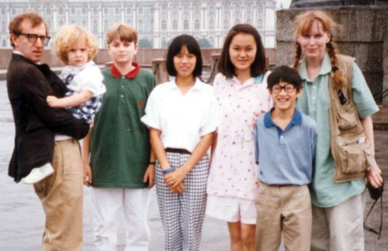 Entre los niños adoptados estaba Dylan Farrow, nacida en 1985 en Corea del Sur y acogida por la pareja. En la foto de Leningrado, Dylan, de apenas tres años, aparece en brazos de Allen, quien se convirtió en su figura paterna. Otro miembro clave es Soon-Yi Previn, adoptada por Farrow y su exesposo, el compositor André Previn, en 1978 desde Corea del Sur, cuando tenía siete años. Allen, que frecuentaba la casa familiar, asumió un rol paternal en su crianza desde temprana edad. La dinámica era peculiar: Allen nunca vivió con Farrow, pero pasaba tiempo con los niños en su apartamento de Manhattan.