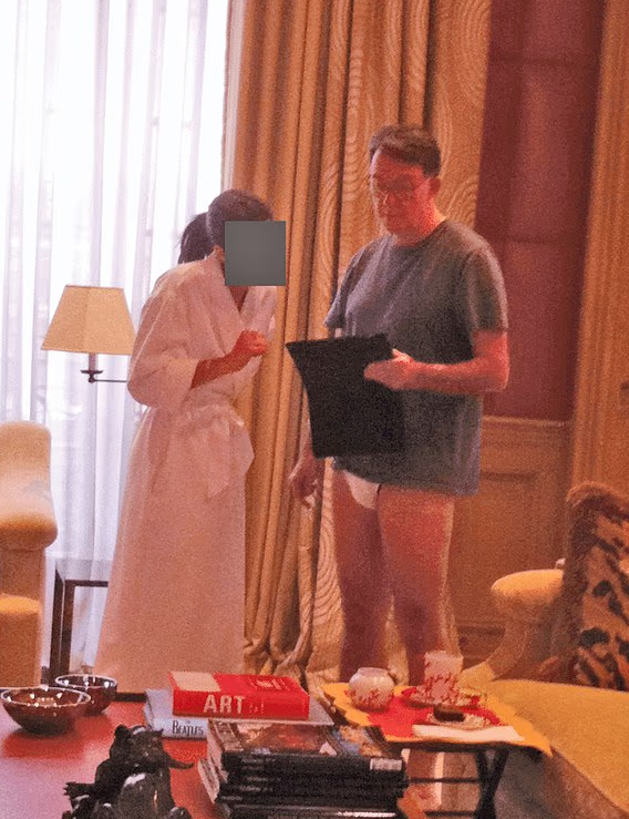 El piso, decorado en tonos intensos como rojo, naranja y rosa, presentaba una estética extravagante y perturbadora. Entre los elementos más destacados se encuentran numerosas fotografías de mujeres desnudas o semidesnudas colgadas en las paredes, dispuestas de manera similar a retratos familiares. Testimonios de personas que trabajaron allí, como un decorador y un mayordomo, describen el impacto de ver tantas imágenes de chicas jóvenes —algunas aparentemente muy jóvenes, posiblemente menores o apenas mayores de 18 años— enmarcadas como si fueran fotos de familia. Un trabajador comentó que, aunque en su momento no pensó explícitamente en pedofilia, la situación estaba «al borde, muy cerca de ello».