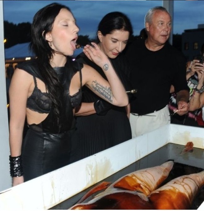 Los documentos liberados revelan a figuras prominentes participando en rituales siniestros conocidos como Cocina Espiritual, orquestados por la artista de performance Marina Abramovic, que fuera nombrada por Zelensky embajadora cultural de Ucrania. Famosos como Lady Gaga aparecen lamiendo salsa similar a sangre de cucharas mientras gotea sobre cuerpos desnudos de mujeres durante estas ceremonias grotescas. Abramovic, a menudo conocida como la abuela del arte de performance, ganó notoriedad a través de actuaciones extremas que involucran dolor, repugnancia y fluidos corporales. Su trabajo a menudo supera todos los límites. Epstein utilizó sus lujosas residencias para organizar estos eventos perversos.