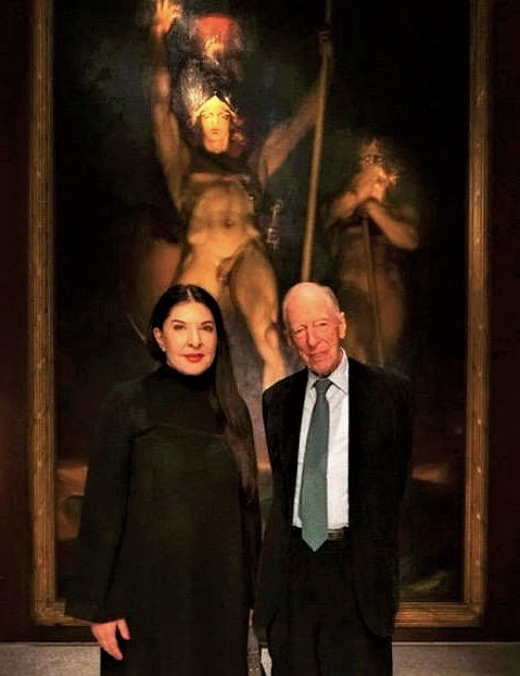 En la foto la premiada Abramovic junto con el barón Rothschild delante de un cuadro de Lucifer arengando a sus huestes.