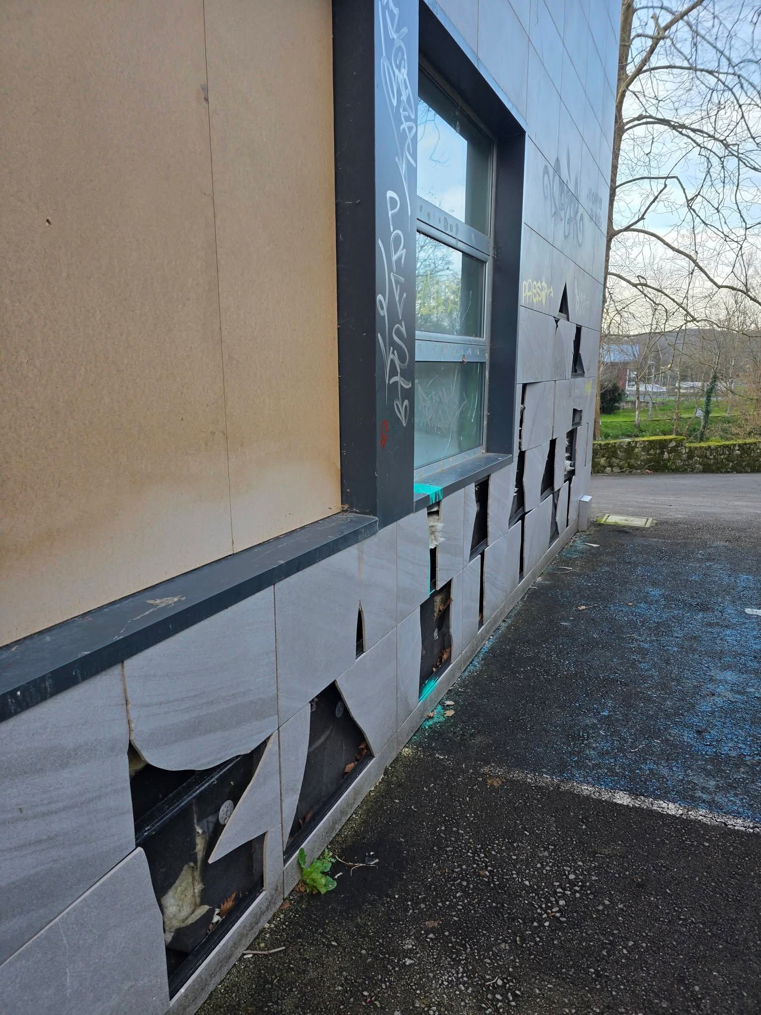 Madre mía. El mantenimiento de fachadas en Piélagos es impresionante. Un colegio, además. Como veremos, los niños están en peligro todo el tiempo.