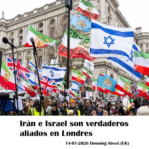 Este fin de semana, hubo una manifestación frente a Downing Street (UK) en apoyo a los valientes que protestan en Irán. Decenas de miles de británicos iraníes se reunieron, ondeando la bandera del león y el sol de su patria antes de la revolución de 1979. También había muchas banderas israelíes entre la multitud, se cantaron canciones hebreas, grupos activistas israelíes y judíos estaban entre los organizadores y oradores del encuentro.