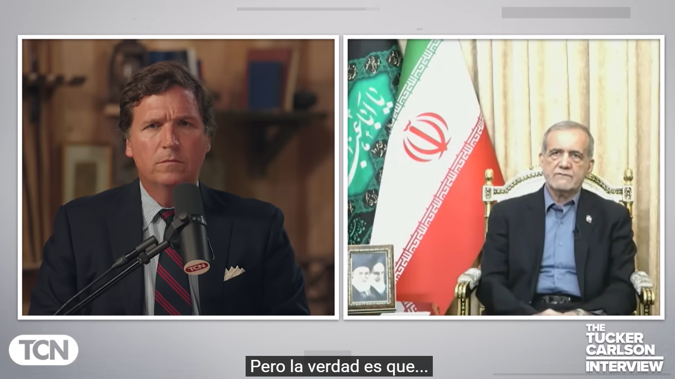 El presidente iraní Masoud Pezeshkian concedió una entrevista al comentarista estadounidense Tucker Carlson, publicada en el canal de YouTube de este último el 7 de julio de 2025. La conversación tuvo lugar poco después de un conflicto armado de corta duración entre Irán, Israel y Estados Unidos (descrito en algunos reportes como una guerra de aproximadamente 12 días), que incluyó bombardeos estadounidenses a supuestas instalaciones nucleares iraníes y ataques israelíes.