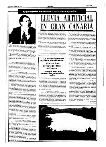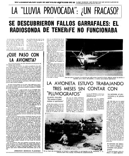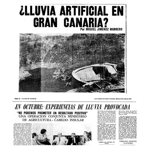 Ahora  voy a exponer un programa de siembra de nubes que se llevó a cabo en las Islas Canarias desde el año 75 hasta principio de los 90, indico los recortes de periódico de la época para que ustedes saquen sus propias conclusiones.