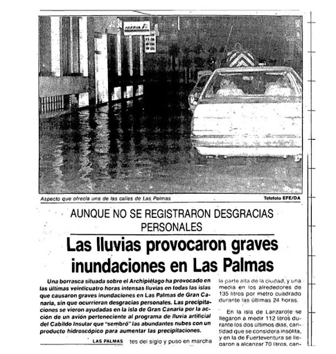 UN «AVIÓN SIEMBRA NUBES» CAUSA EN LAS PALMAS LAS LLUVIAS MÁS GRAVES DEL ÚLTIMO SIGLO (1989)