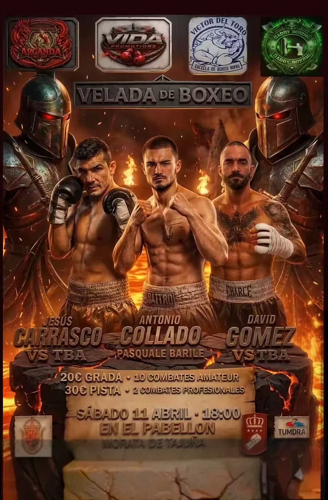 Velada de boxeo en Morata de Tajuña hoy a las 18:00. No te lo pierdas.